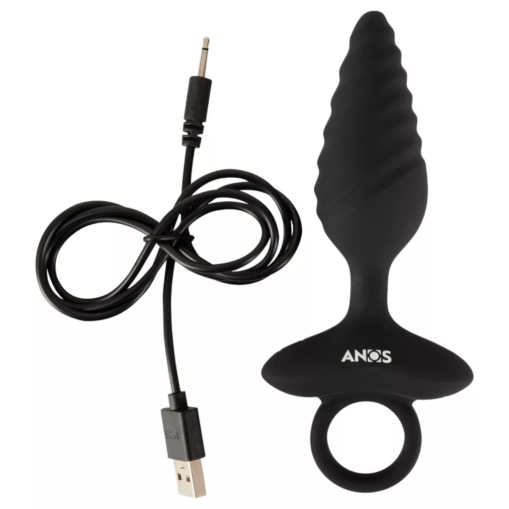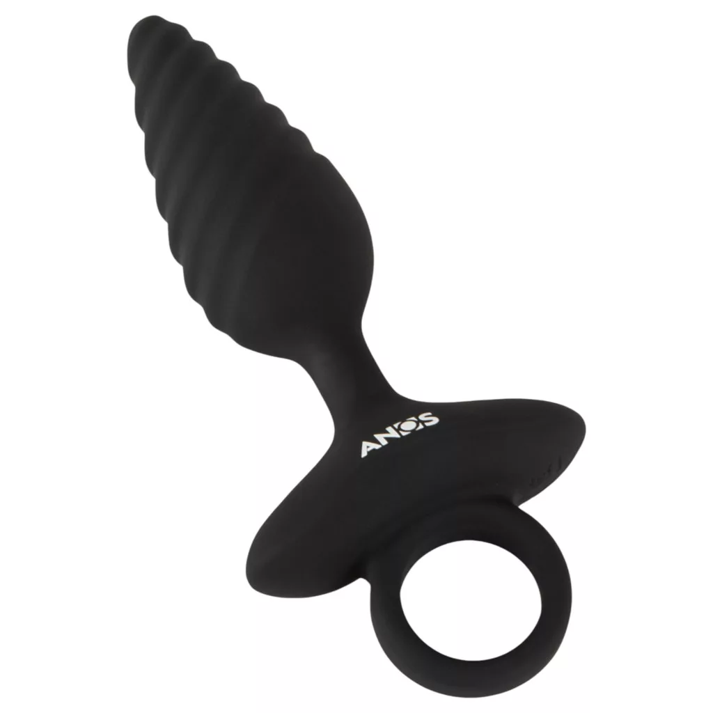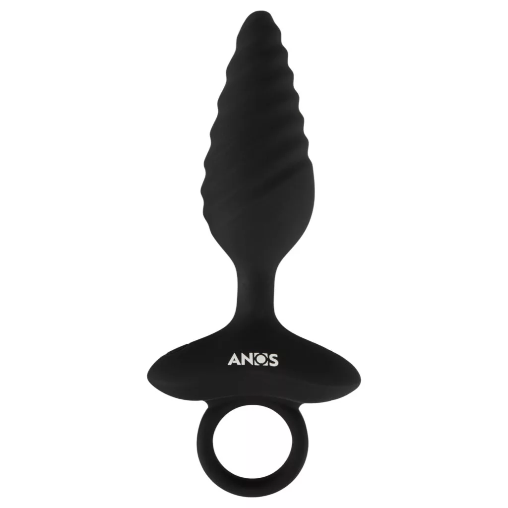 ANOS - bordázott vibrációs anál plug (fekete)