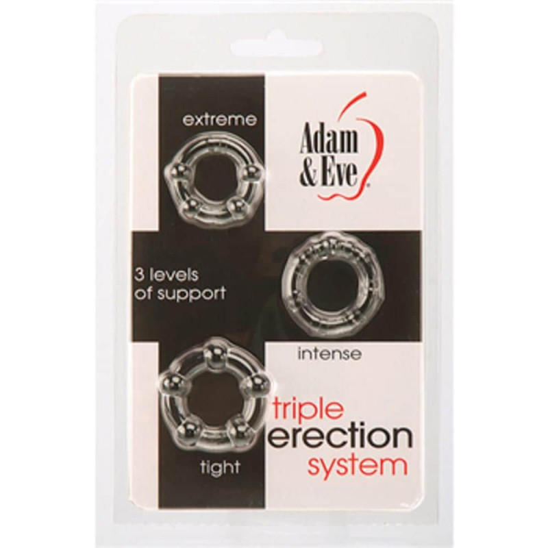 Az Adam & Eve áttetsző péniszgyűrű szettje 3 darab péniszgyűrűt tartalmaz, amelyek mind kiváló minőségű, átlátszó szilikonból készültek. Ezek a gyűrűk azért lettek tervezve, hogy növeljék a férfiak szexuális élményét és javítsák a merevedés minőségét.