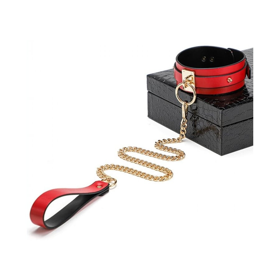 A szett minden egyes darabja a dominancia és alárendeltség játékainak minden aspektusát lefedi, miközben a luxus kivitelezés garantálja, hogy minden pillanat különleges legyen. A láncok arany fémből készülnek, ami egy extra eleganciát és exkluzivitást kölcsönöz a készletnek.