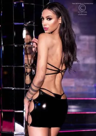 A Chilirose 4273 partiruha egy lenyűgözően szexi darab, amely minden tekintetet magára vonz. A fényes fekete anyag simogatja a testet, míg az ezüst karikák és a bátor kivágások izgalmas kikacsintást adnak a bőrre. A hátul átszőtt pántok pedig egy merész, hálós hatást keltenek, ami még inkább fokozza a viselő vonzerejét. Ez a ruha nem csak kényelmes, hanem garantáltan a parti csillagává is teszi viselőjét.