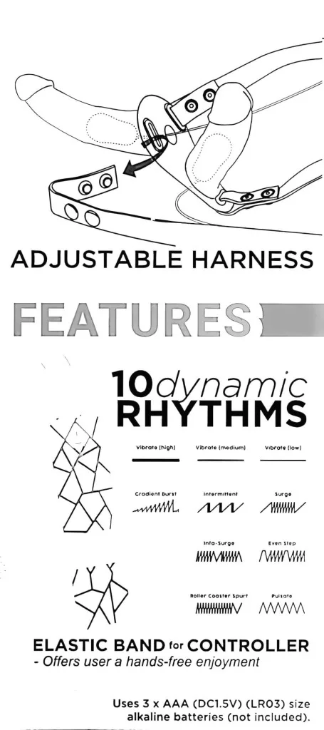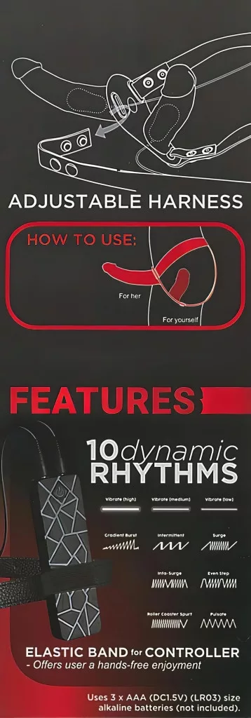 Anyaga: ABS (vezérlő), Bőr (pántok), Szilikon (vibrátorok) - EU-rendeletnek megfelelő, phthalát-mentes.