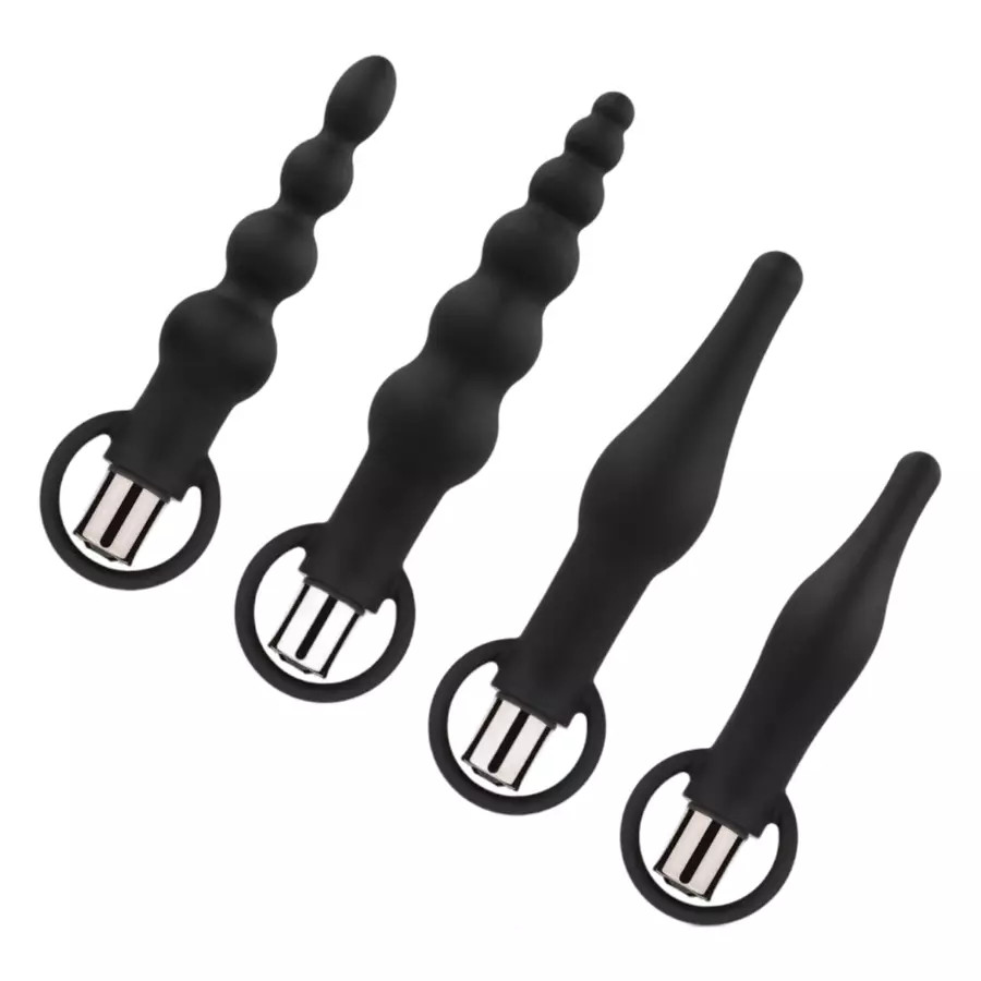 • 4 eltérő méretű és formájú análkúp: A szett tartalmaz két különböző méretű análkúpot és két anál gyöngysort, amelyek lehetővé teszik a fokozatos, kíméletes anál behatolást. Így lépésről lépésre haladhatsz, ahogy a komfortszinted engedi.