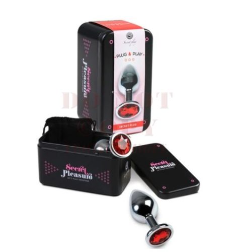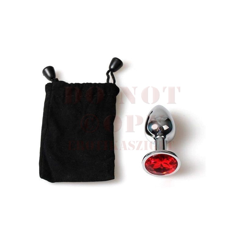 Exkluzív fémdobozos análkúp piros kővel - közepes