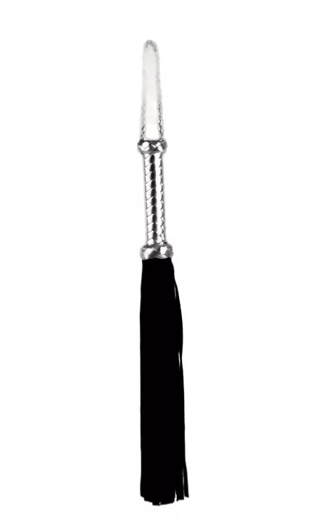 Fekete velűrbőr korbács ezüst nyéllel - 45 cm