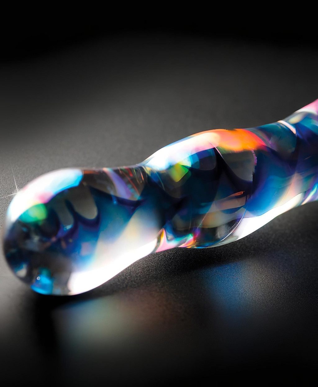 Icicles No. 08 - hullámos, kétvégű, üveg dildó (átlátszó-kék)