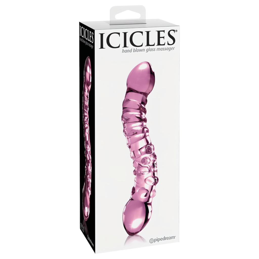 Icicles No. 55 - kétvégű, G-pont üveg dildó (pink)