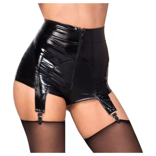 Noir - fényes forrónadrág harisnyatartóval (fekete)