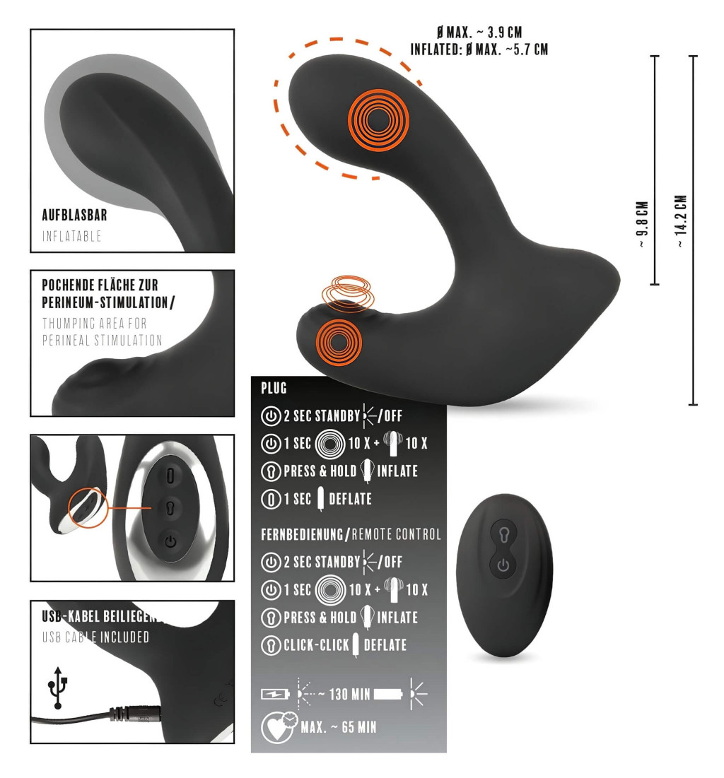 Rebel RC - akkus, rádiós pumpálható anál vibrátor (fekete)