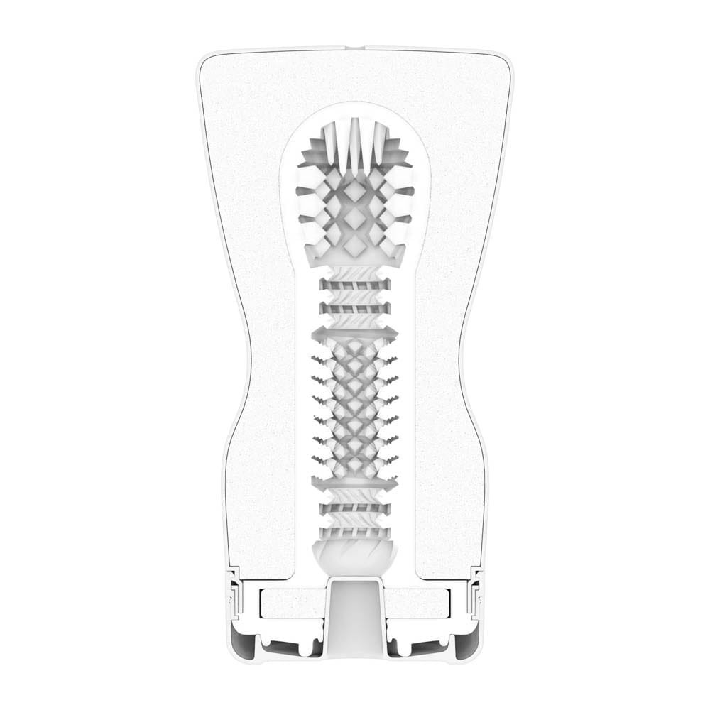 A Squeeze Tube Cup kialakítása rendkívül praktikus és diszkrét. Az eszköz egy kompakt méretű, henger alakú tubusból áll, amely könnyen illeszkedik a kézbe. A kemény, tartós anyagból készült tubus biztosítja a stabil fogást és a könnyű használatot.
