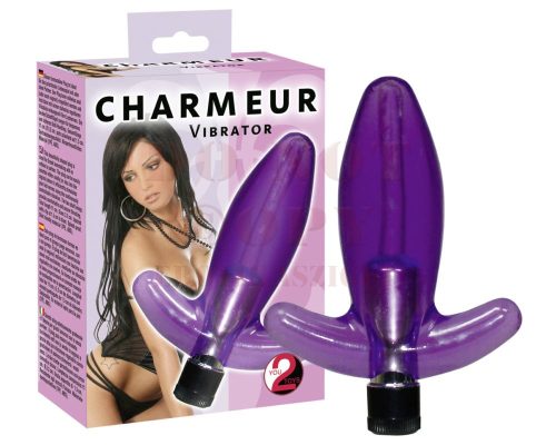 Letisztult vonalú, lila gömbölyded végű vibrátor, mely alkalmas mind vaginális, mind anális örömszerzésre. A kétoldalt látható szárnyak garantálják az anális játékok biztonságosságát: stabilan tolható-húzható-tartható. A vibráció erőssége állítható.