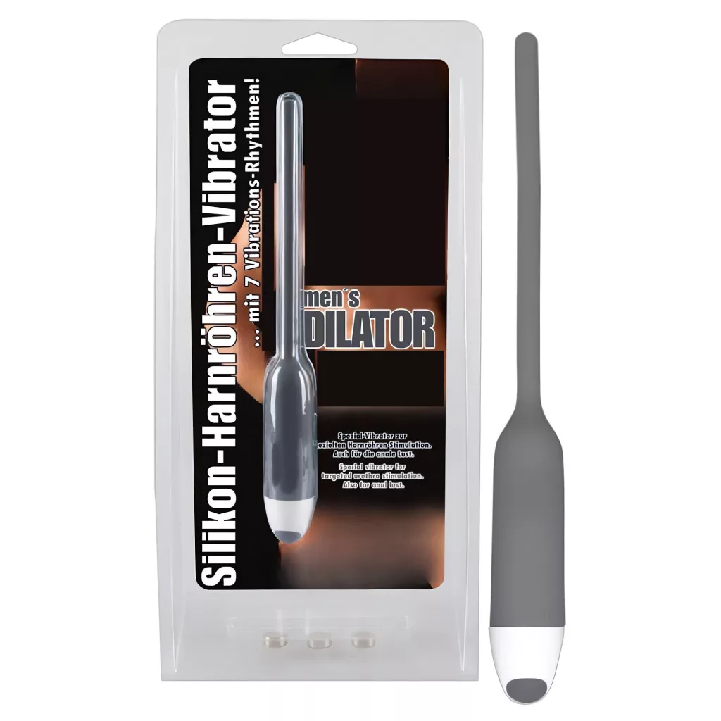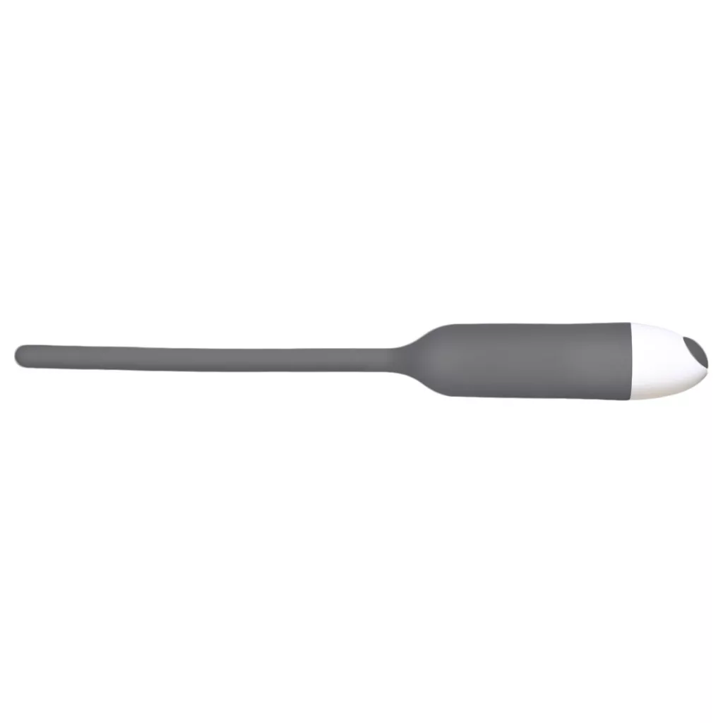 Enyhén rugalmas, selymes tapintású, szürke szilikonból, csendes, 7-fokozatú vibrációval készült húgycsővibrátor.